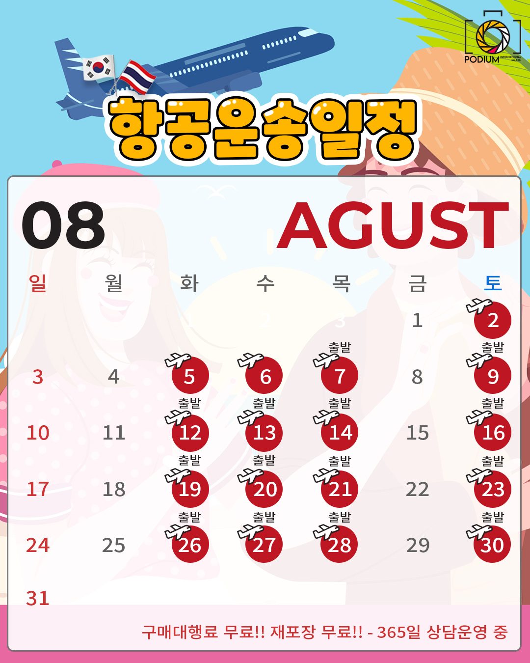 ✈️ [포디움익스프레스] 2025년 8월 항공운송일정 안내드립니다